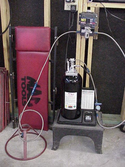 Nitrous tank fill station in my garage awaiting the 64LB source tank. There is no local Nitrous dealer to fill your tank.