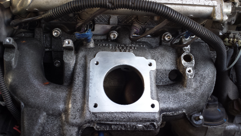 Also enlarged the lk9 manifold holes to fit the lsj manifold bolts and test fitted it with the phenolic spacer i had already. Fit nice and snug! Will need to buy 2 more bolts the same size since the ones i had were for the lsj intake manifold. Easy peasy.