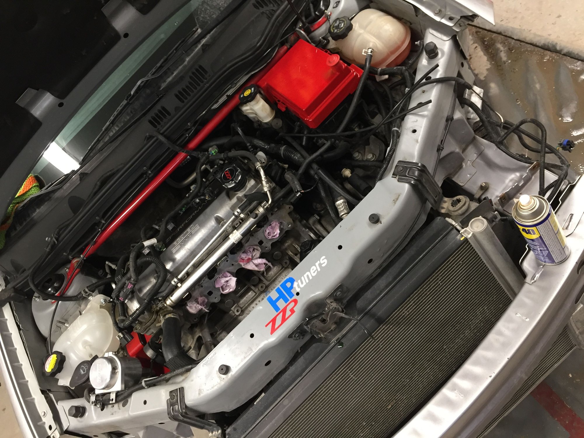 End-plate finally came in, Everything's back together after a long evening. Car ate a decent amount of coolant, everything seems full, spilled lots of coolant