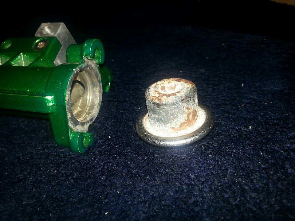 You mean in this part? I could tell there was something inside here, so it didn't get powdercoated. The one currently on the car is in better shape, so I'll be using it instead.