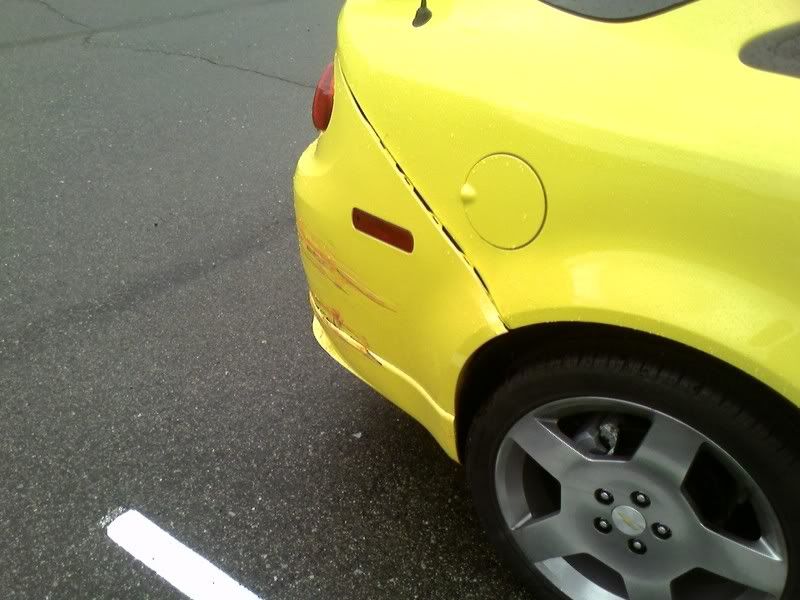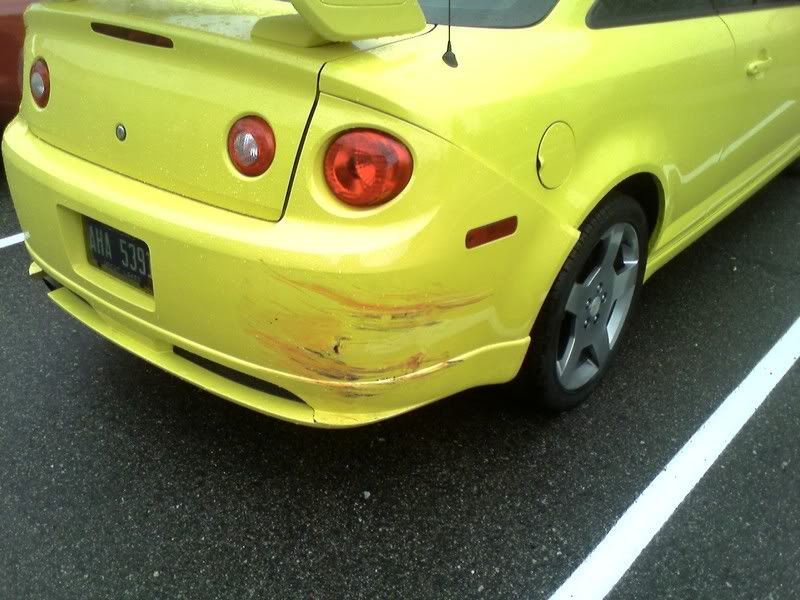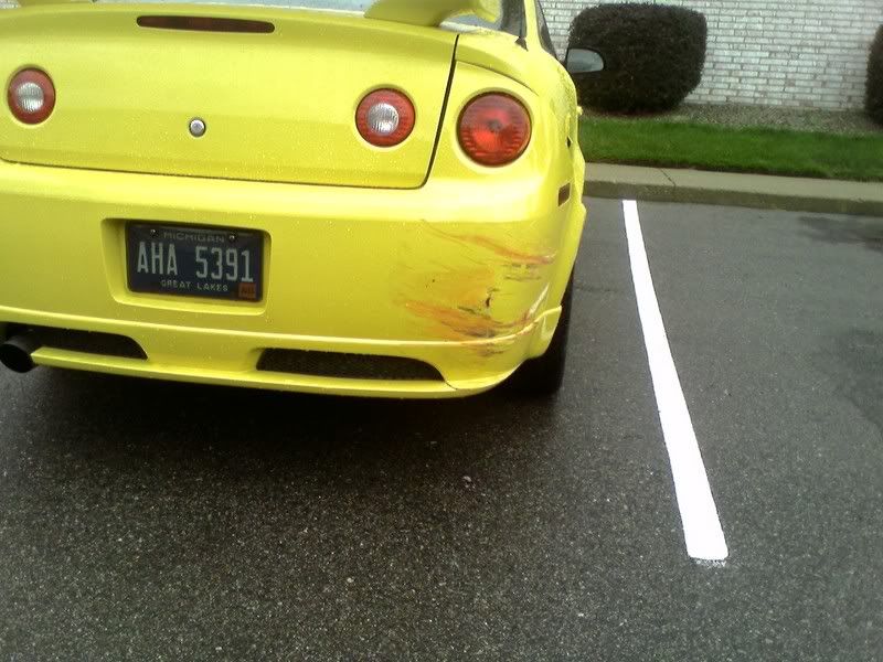First, on my way to work, a semi kicks up a rock on i96 and puts a chip the size of a nickel in my winshield, then on my way home, I was sitting waiting to turn left into my complex and this girl ON HER PHONE comes flying down from the overpass 100 yards behind me and clips my corner....and she says she didn't see me! Not only were my brake lights on (thank god i wasn't just sitting with the clutch in like normal) but my car is YELLOW!!!!!