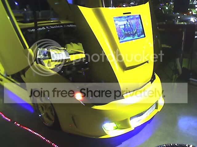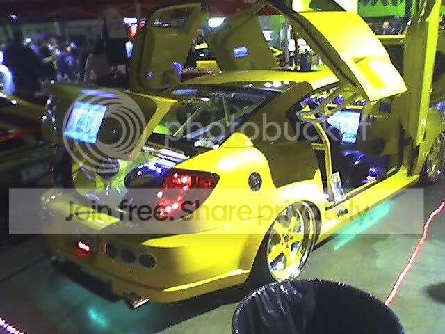 a tv on the hood and the trunk...how creative...oh, and the gullwing doors AND lambo doors on the same car! thats a first for my eyes...the lambo doors on the cobalt doesnt look too bad...those rims arent too bad either